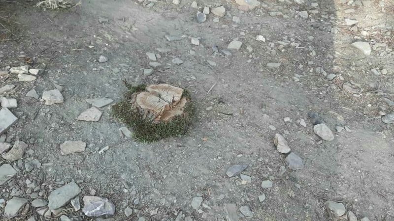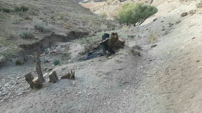 تصاویر تاسف باری از قطع درختان و غارت سرمایه های ملی در نهاوند بالاتر از سراب گاماسیاب، نرسیده به راهدارخانه